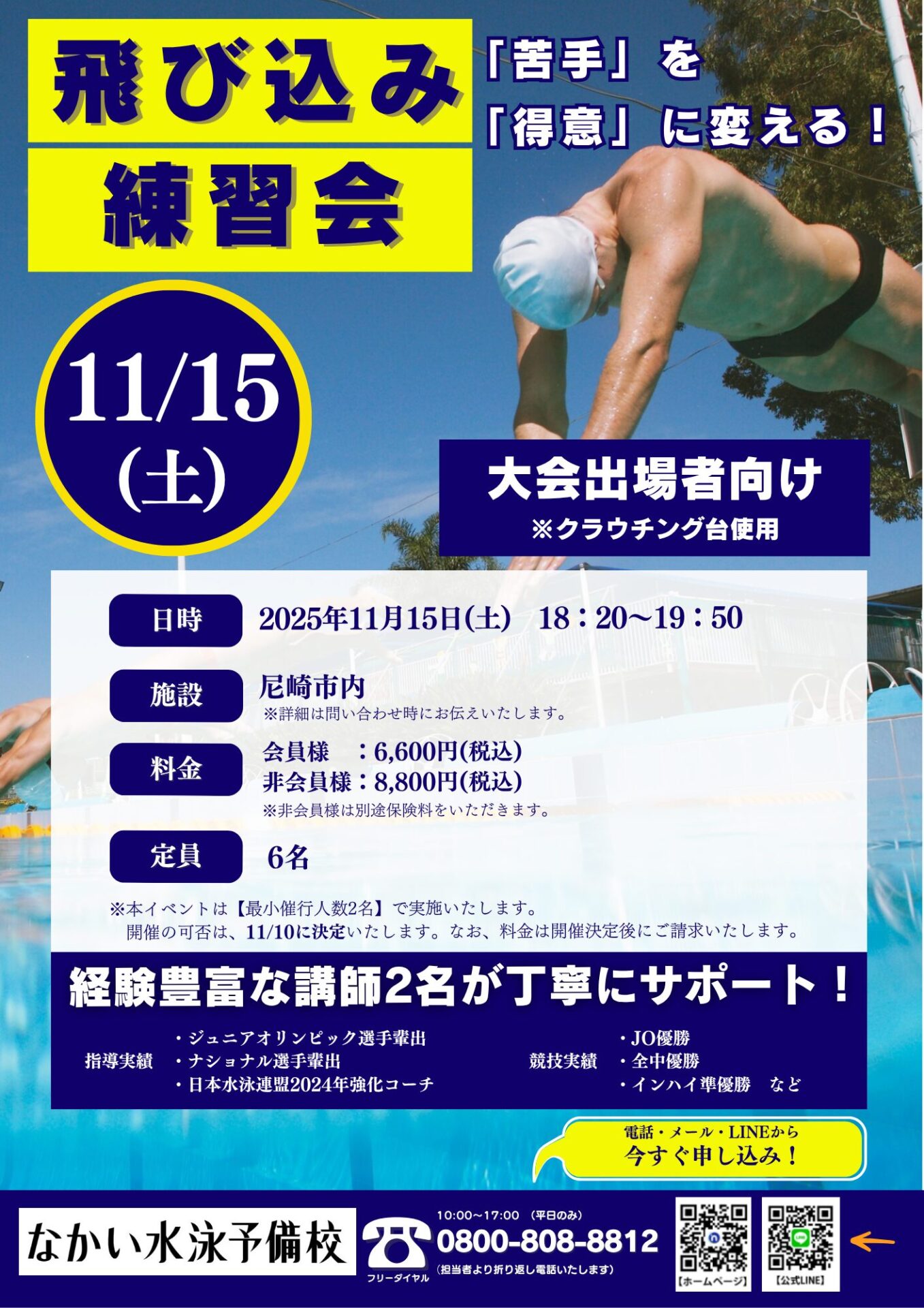 一覧はこちら【大阪・神戸校】11/15(土)飛び込み練習会開催!