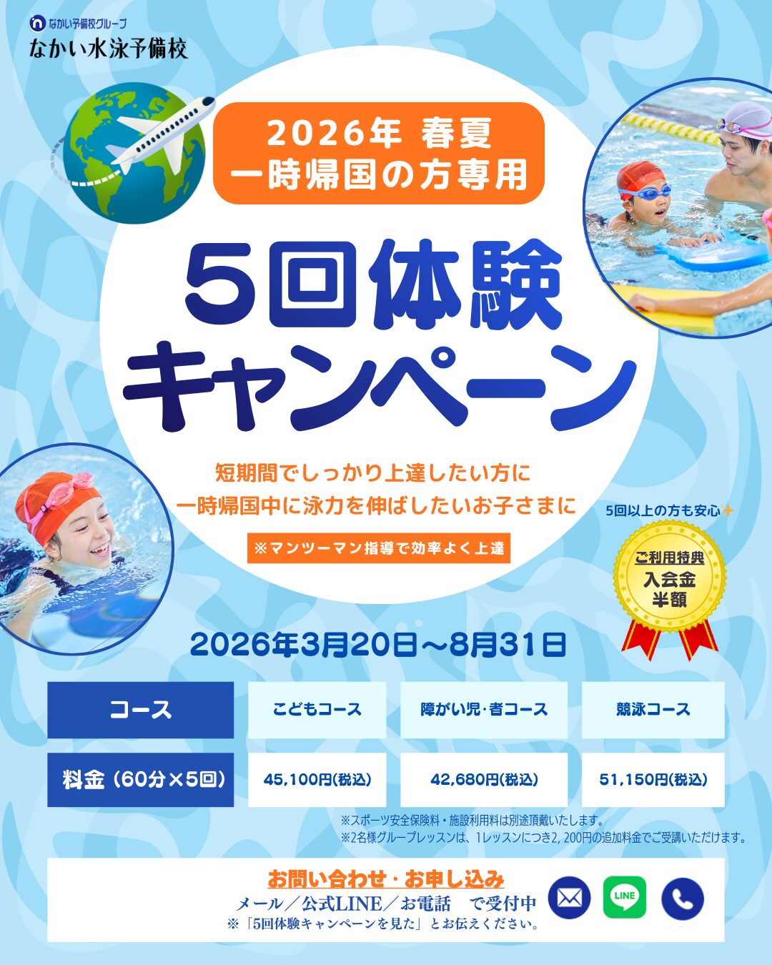 一覧はこちら- 2026年3月19日【全校対象】一時帰国の方専用:5回体験キャンペーンのお知らせ